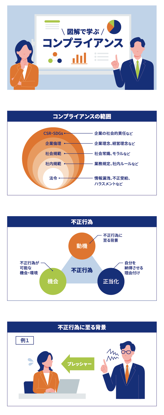 コンプライアンスに関する図解イラスト制作例 G609 不正行為に至る背景